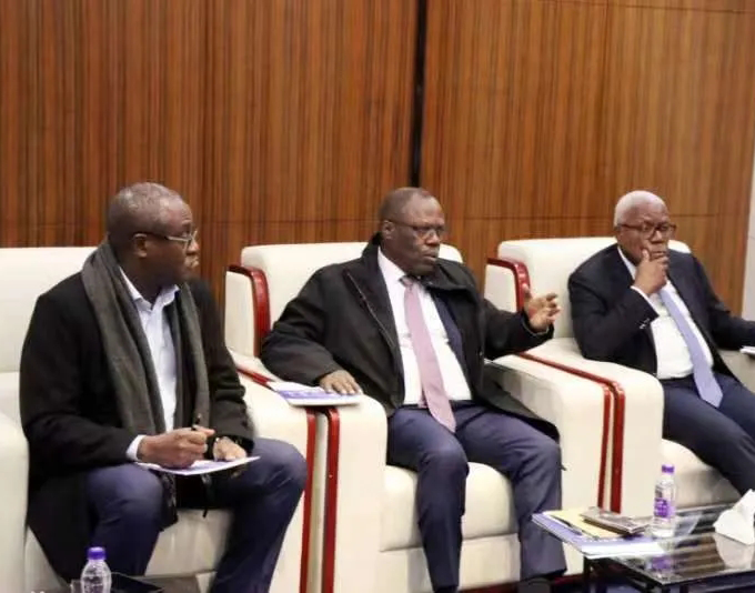 安哥拉礦產(chǎn)資源石油和天然氣部部長(zhǎng)阿澤維多(右二)、安哥拉國(guó)家石油公司董事長(zhǎng)兼首席執(zhí)行官馬丁斯(右一)與參會(huì)代表探討石油等合作內(nèi)容